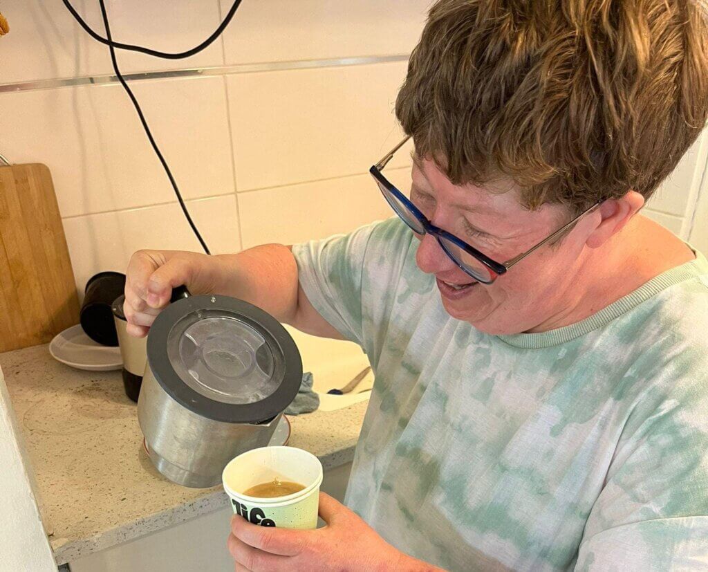 Cognitive skills are taught through the Feuerstein method—gathering information, making comparisons, understanding cause and effect, and connecting ideas. From there, participants move into job-specific training such as archiving documents, customer service, gardening, café work, and more.