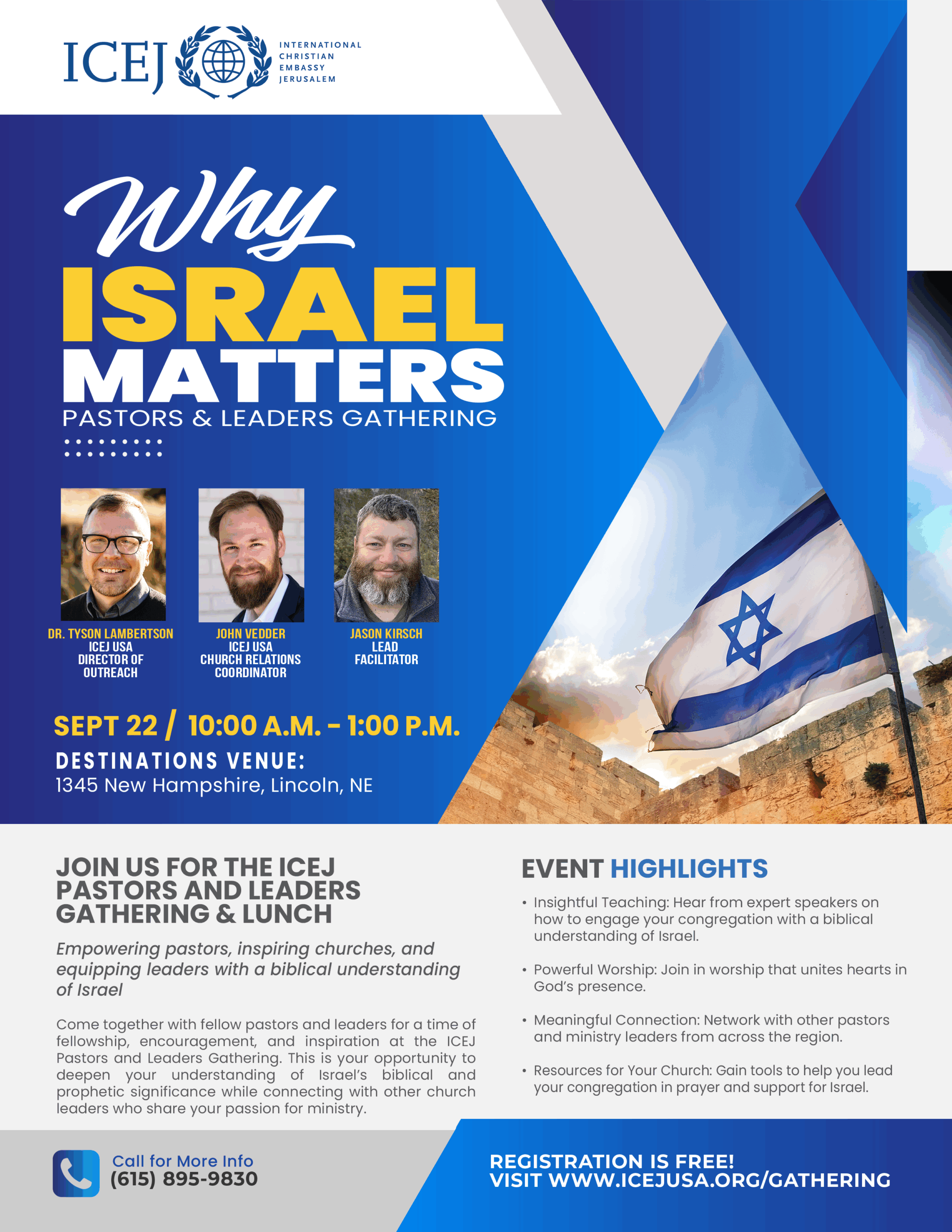 Join ICEJ USA Outreach Director Dr. Tyson Lambertson, Church Relations Coordinator John Vedder, and NECLF Lead Facilitator Jason Kirsch.