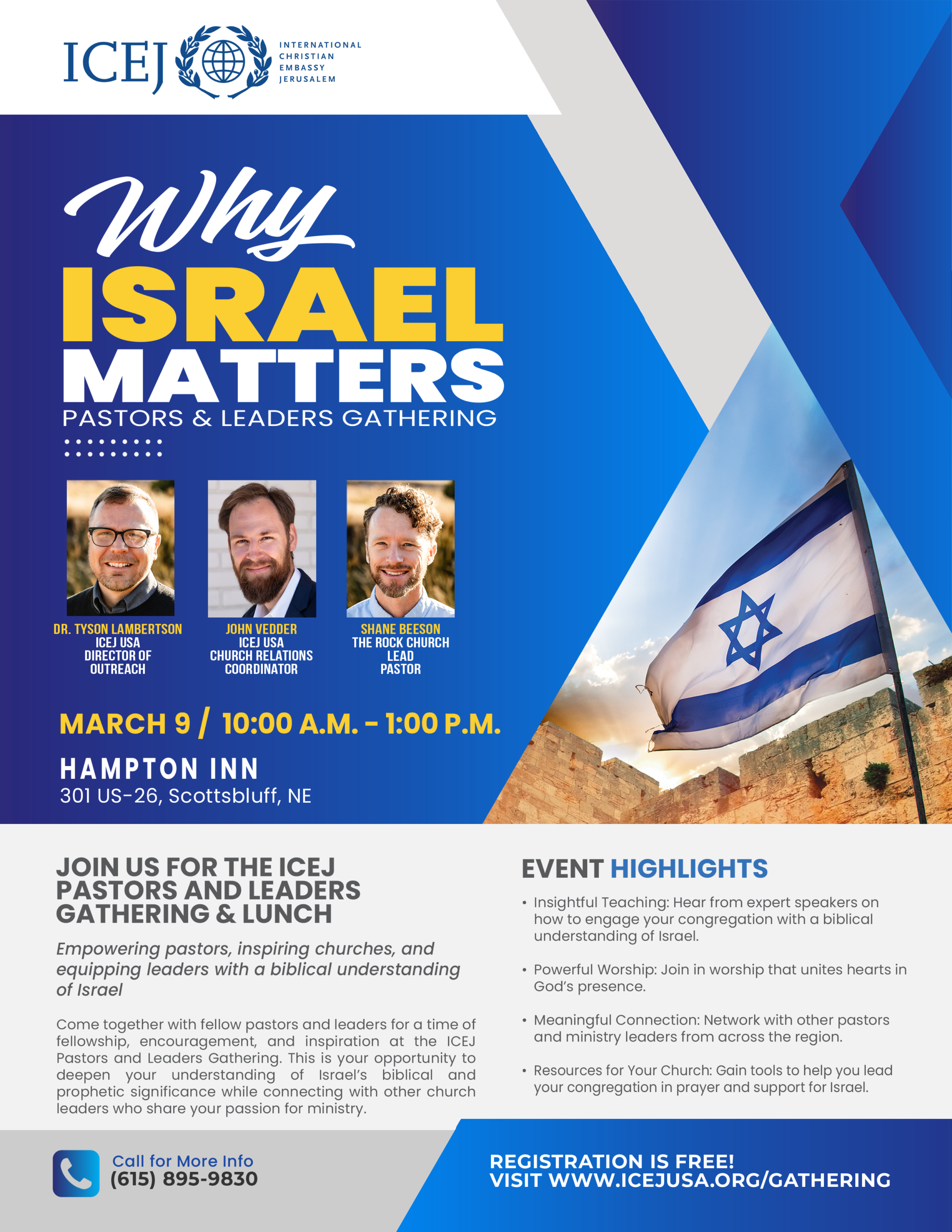 Join ICEJ USA Outreach Director Dr. Tyson Lambertson, ICEJ USA Church Relations Coordinator Pastor John Vedder and The Rock Church Lead Pastor Shane Beeson.