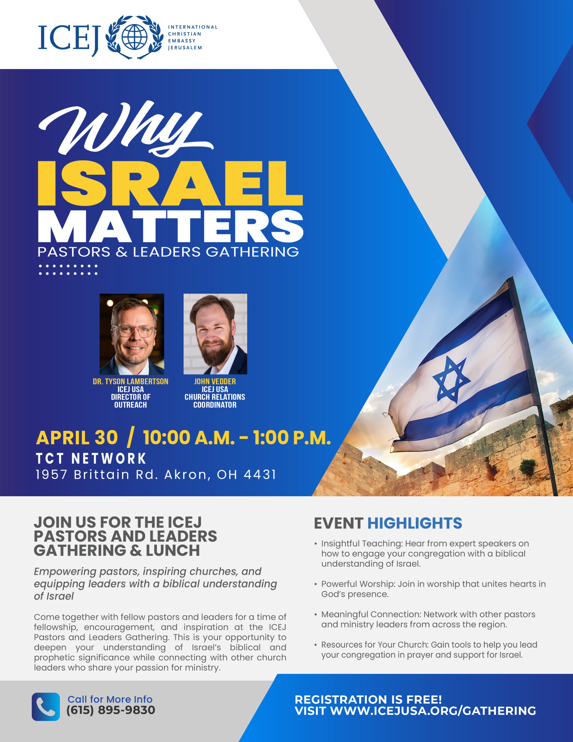 Join ICEJ USA Outreach Director Dr. Tyson Lambertson and ICEJ USA Church Relations Coordinator Pastor John Vedder.